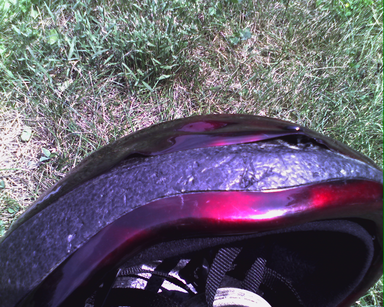 During the early part of August most of the east coast of the US saw temperatures in excess of 100 degrees F! Although many people do not ride in temperatures this high, since I have been riding every day while temperatures have slowly been increasing, I saw no reason to not ride during this hot spell. I was surprised to find that I had absolutely no difficulty with the hot temperatures. But unfortunately that was NOT the case with my helmet which began to melt in the hot sun!